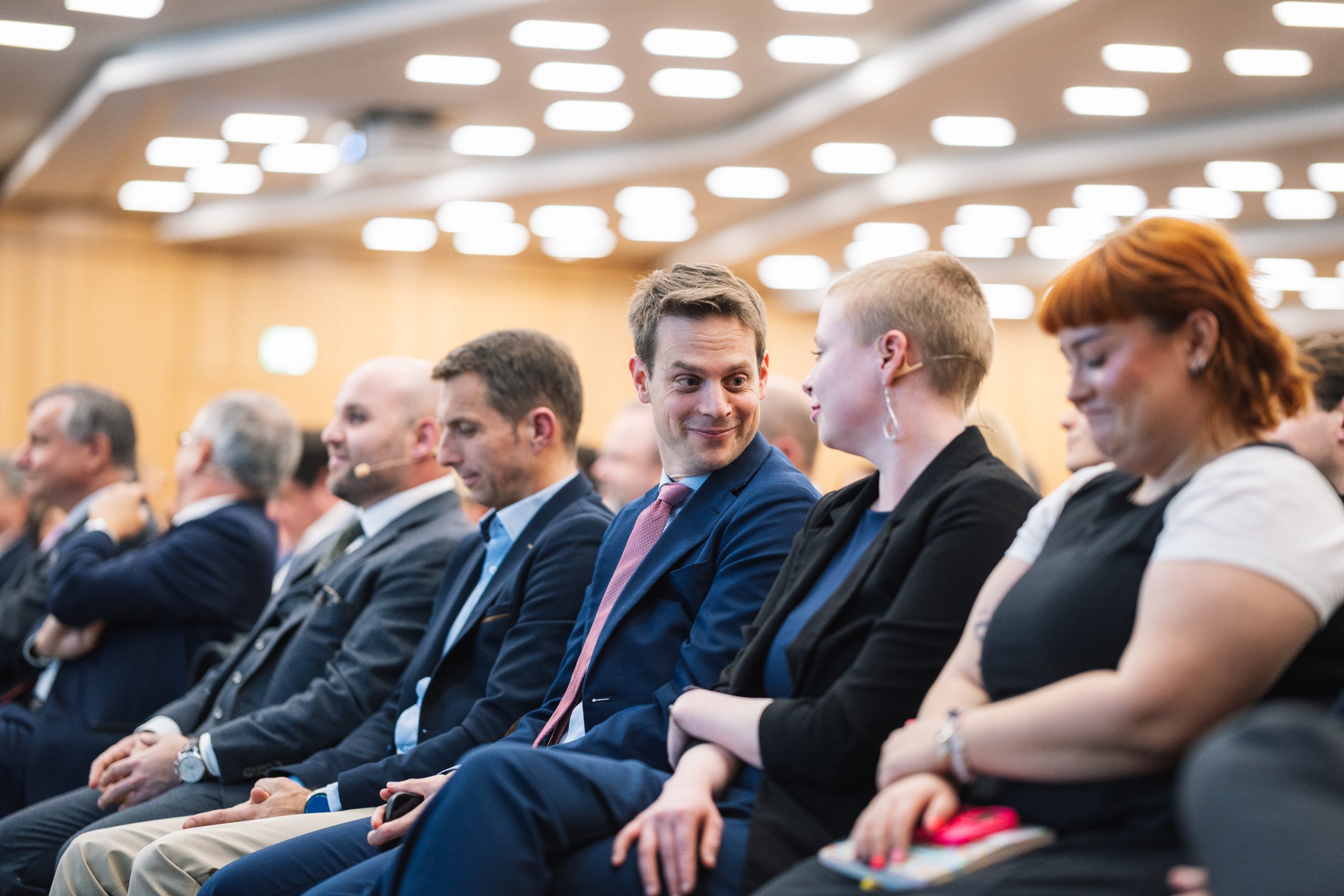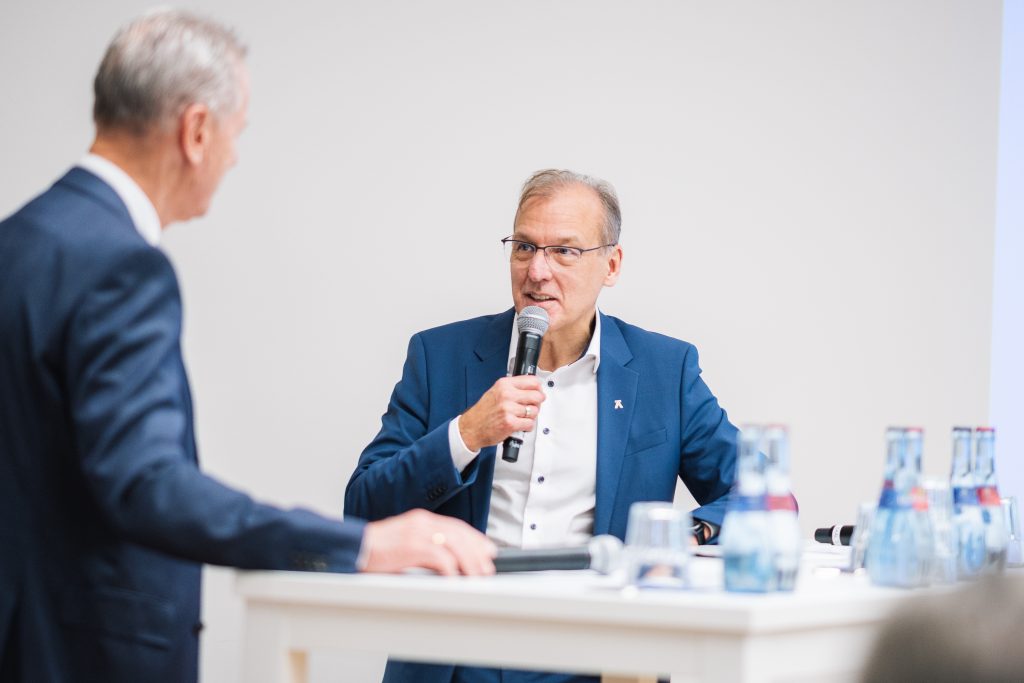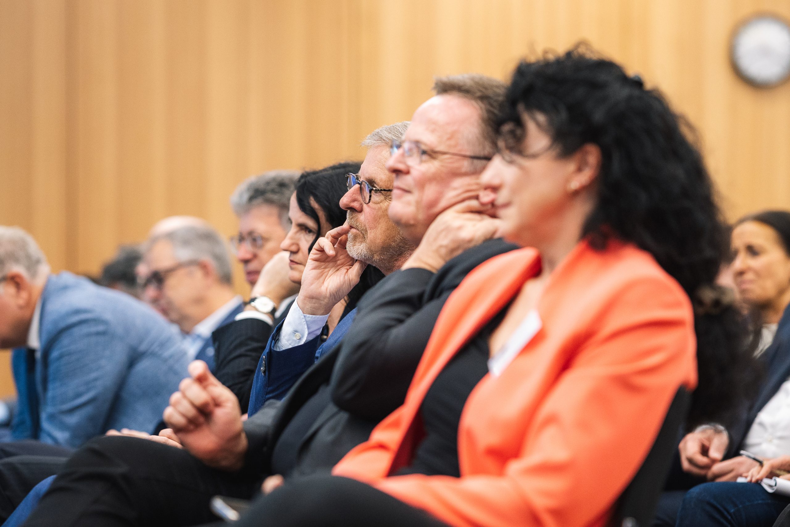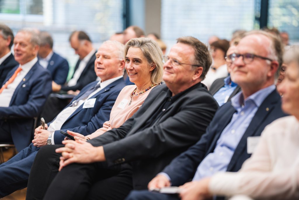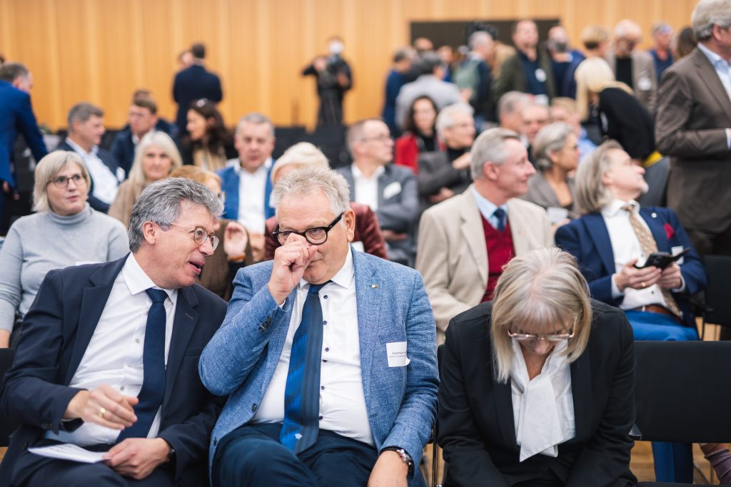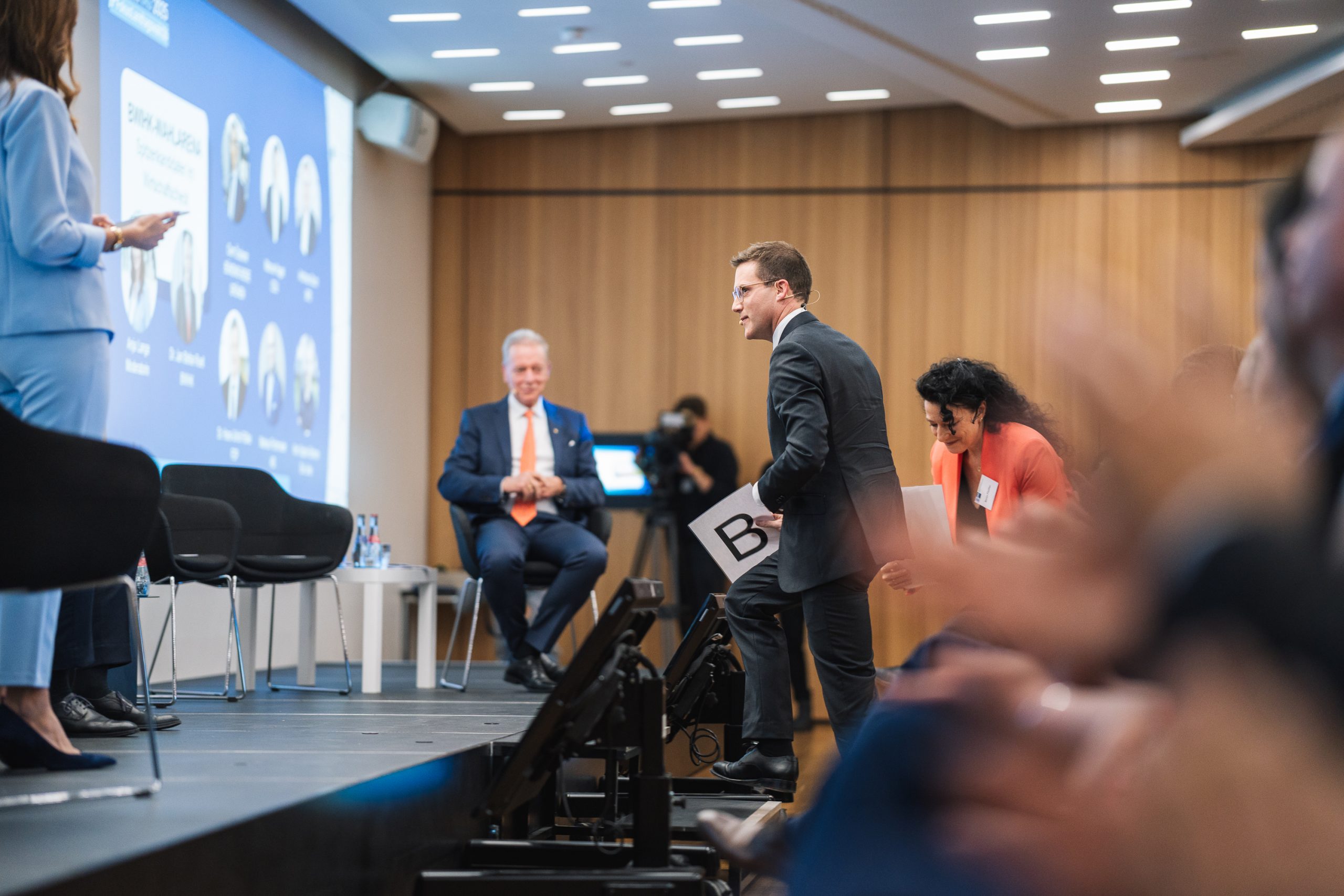Die Wahlarena nutzte unterschiedliche Elemente für einen umfassenden Wirtschafts-Check. Per getimten je 2-Minuten-Fenstern für Statements und Antworten in allen Themenfeldern sowie mit klaren Ja/Nein-Antwortrunden, in denen die Politiker entsprechende Schilder hochhalten und damit Farbe bekennen mussten, schufen wir gleichberechtigt und transparent Raum für klare Positionen, unternehmerische Perspektiven und konkrete Erwartungen an die nächste Landesregierung. Eine Mentimeter-Abfrage im Publikum, bei der die Kandidatin und die Kandidaten aus den Top-Begriffen der Wortwolke ihre Abschlussstatements formulierten, rundete das Podium ab.