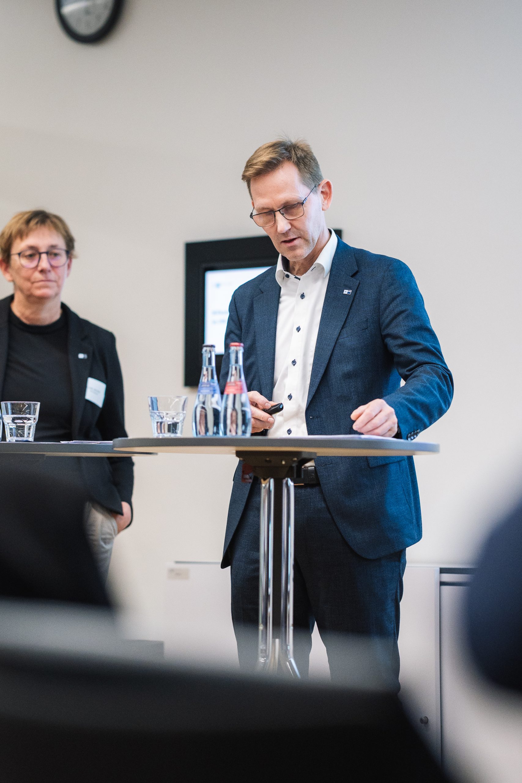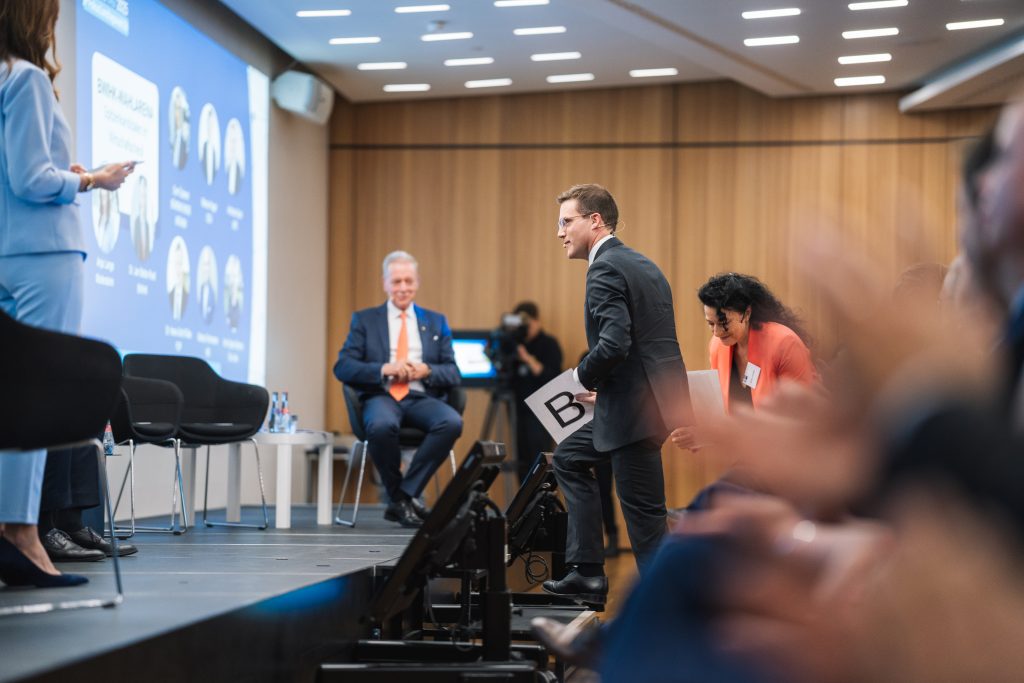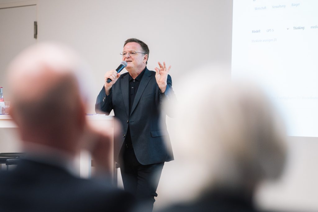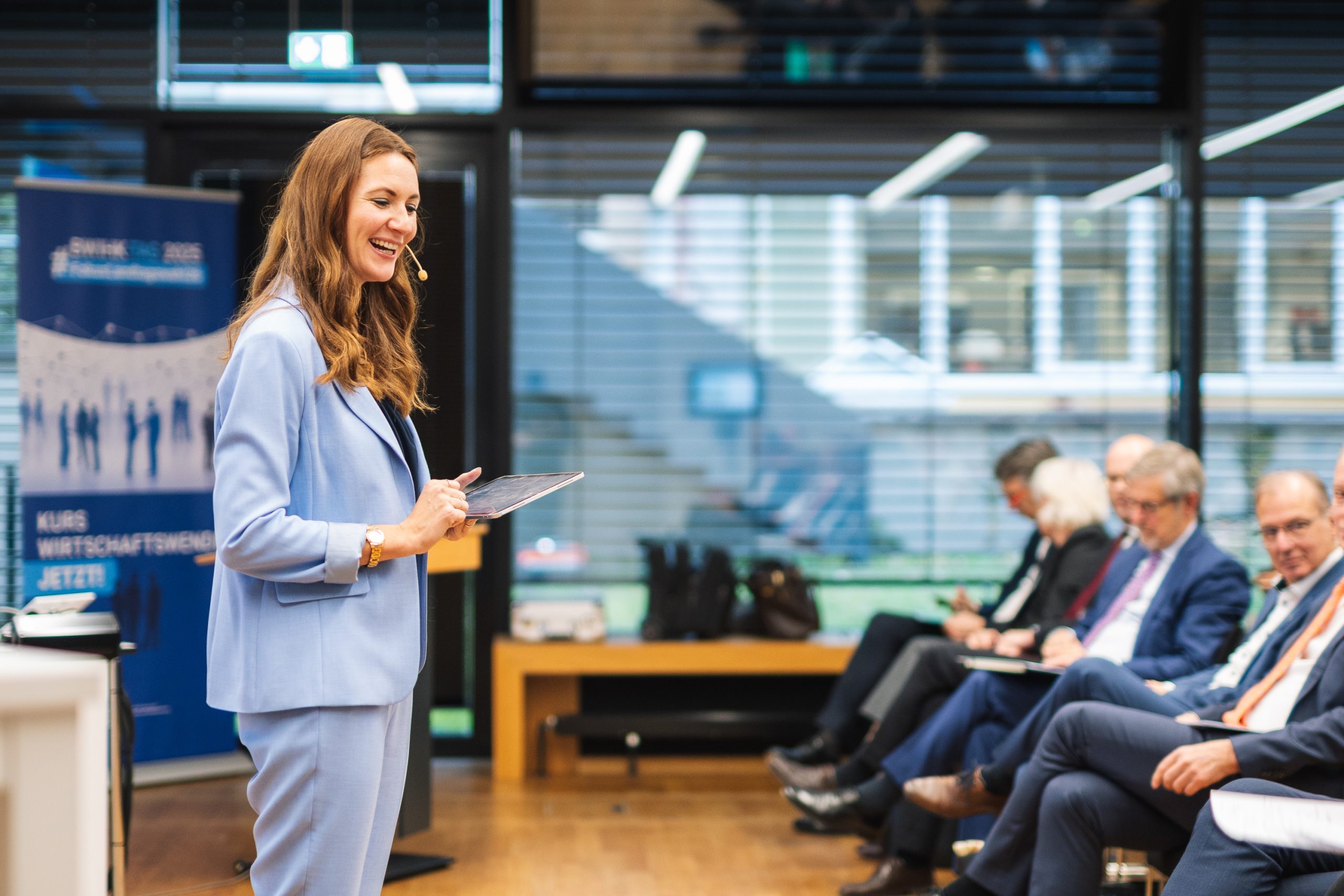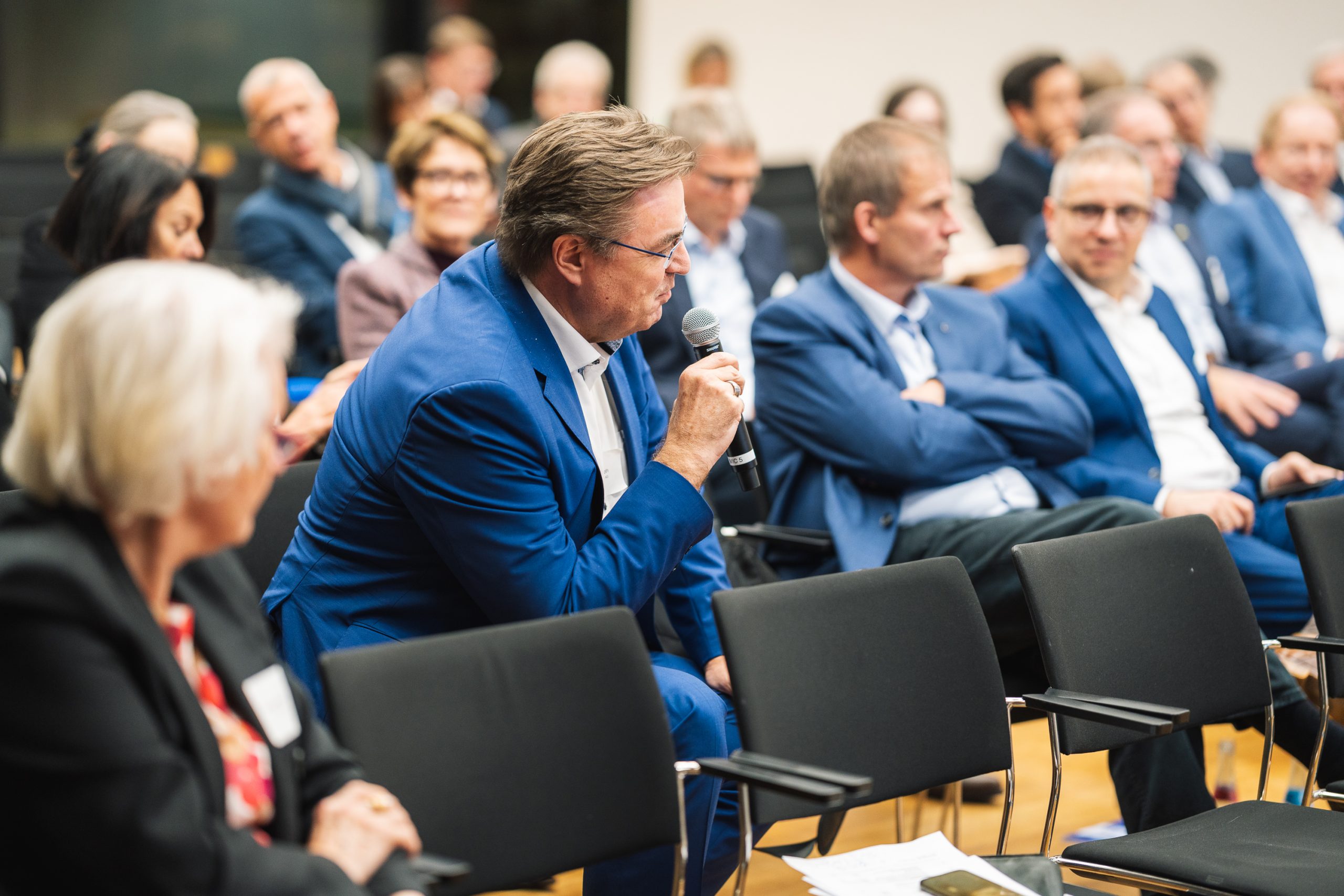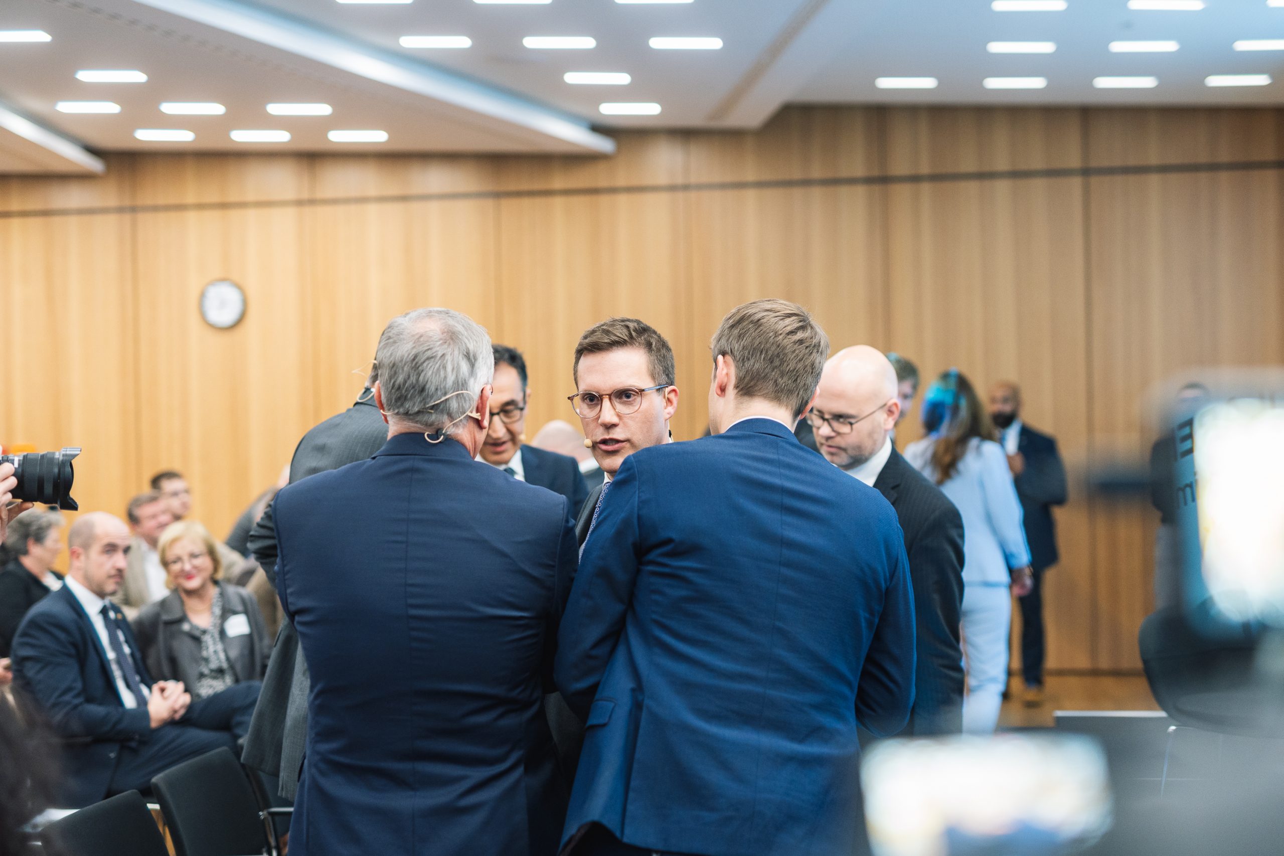 Die Wahlarena nutzte unterschiedliche Elemente für einen umfassenden Wirtschafts-Check. Per getimten je 2-Minuten-Fenstern für Statements und Antworten in allen Themenfeldern sowie mit klaren Ja/Nein-Antwortrunden, in denen die Politiker entsprechende Schilder hochhalten und damit Farbe bekennen mussten, schufen wir gleichberechtigt und transparent Raum für klare Positionen, unternehmerische Perspektiven und konkrete Erwartungen an die nächste Landesregierung. Eine Mentimeter-Abfrage im Publikum, bei der die Kandidatin und die Kandidaten aus den Top-Begriffen der Wortwolke ihre Abschlussstatements formulierten, rundete das Podium ab.