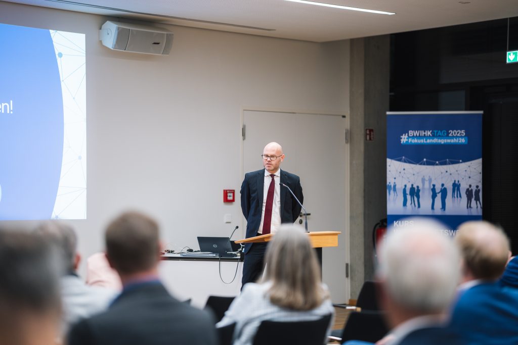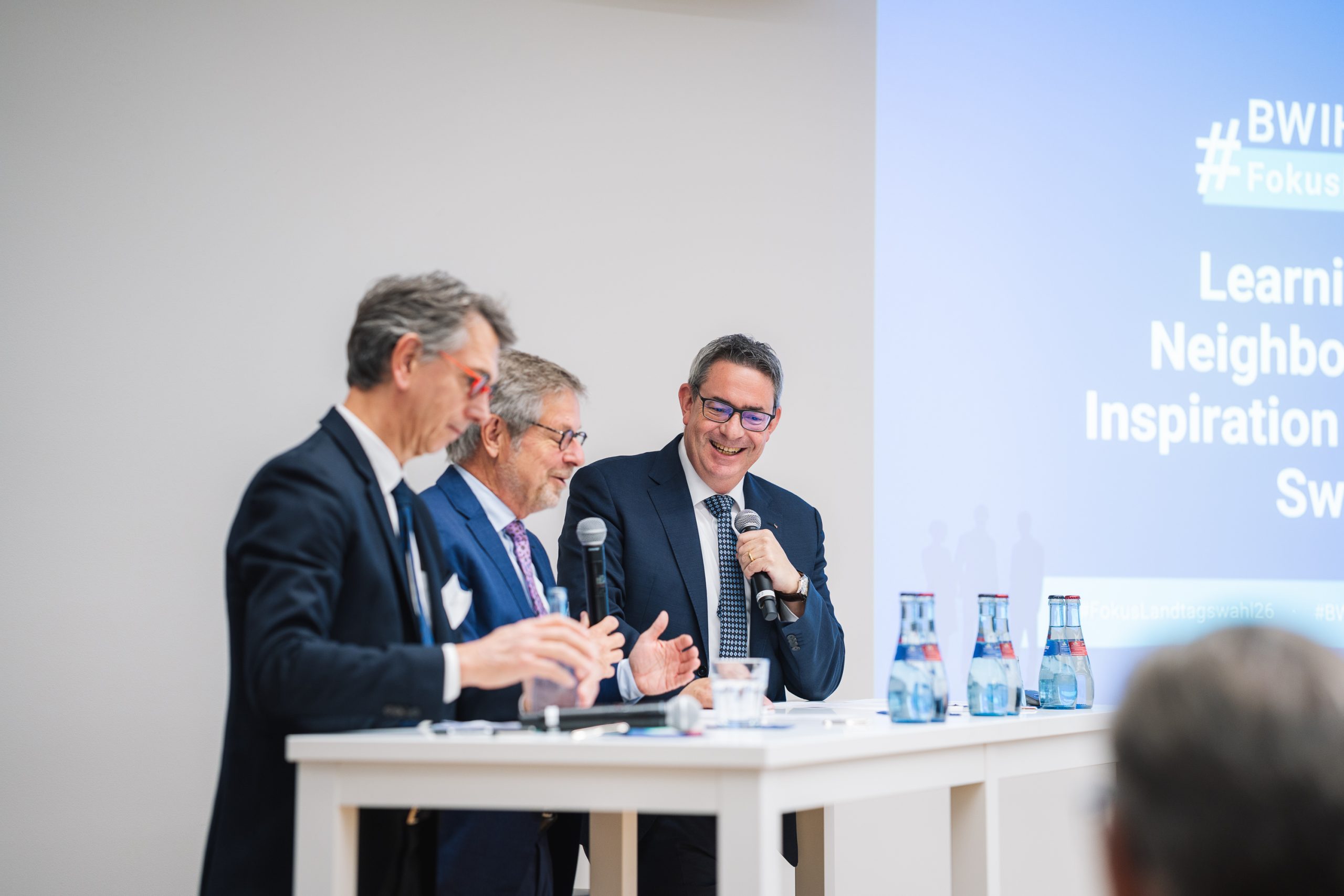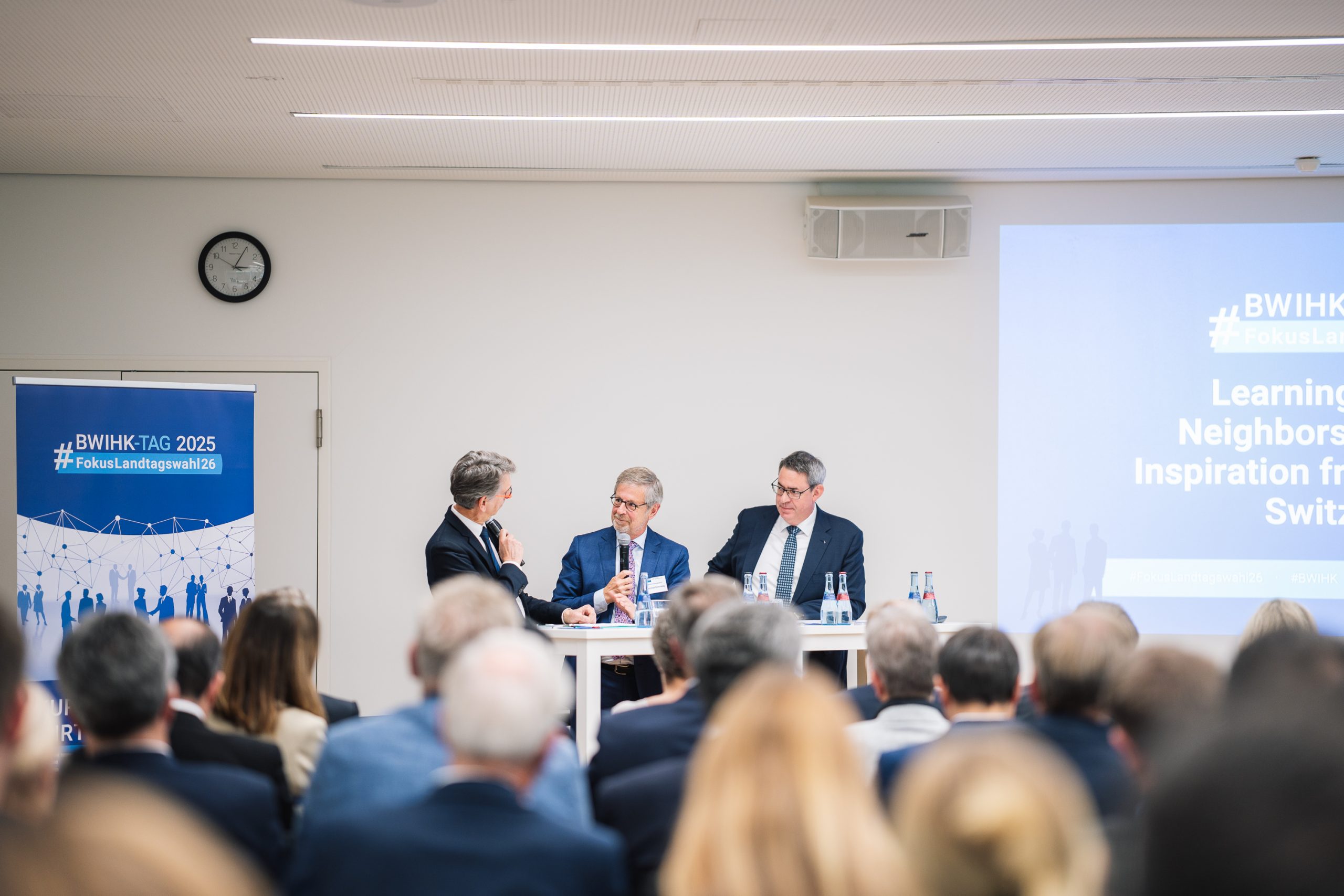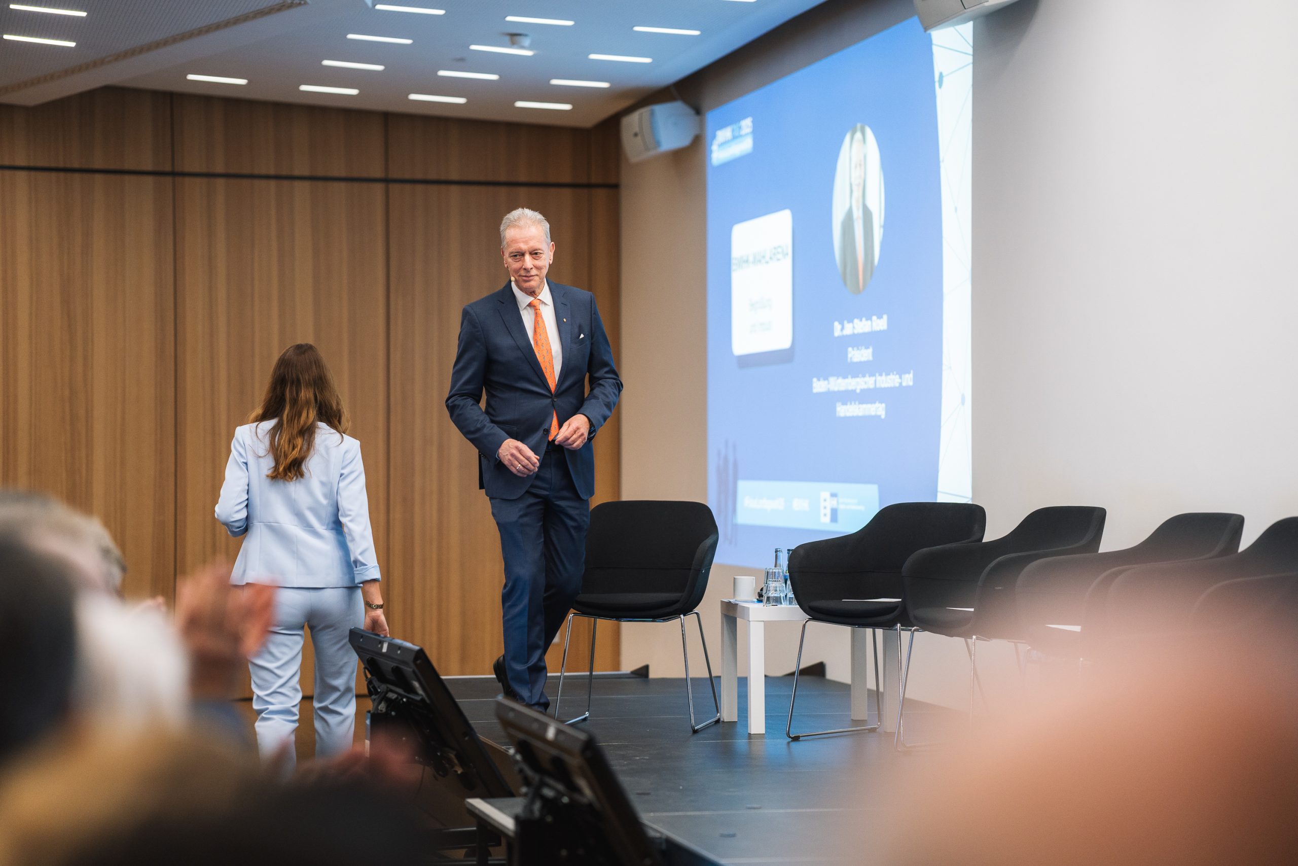Kurs Wirtschaftswende – Welche Politik braucht der Standort Baden-Württemberg? Wenige Monate vor der Landtagswahl 2026 diskutierten alle Spitzenkandidaten der Parteien für den dann 18. Landtag mit der Wirtschaft über die Zukunft Baden-Württembergs im öffentlichkeitswirksamen Auftakt des BWIHK zur Landtagswahl 2026.