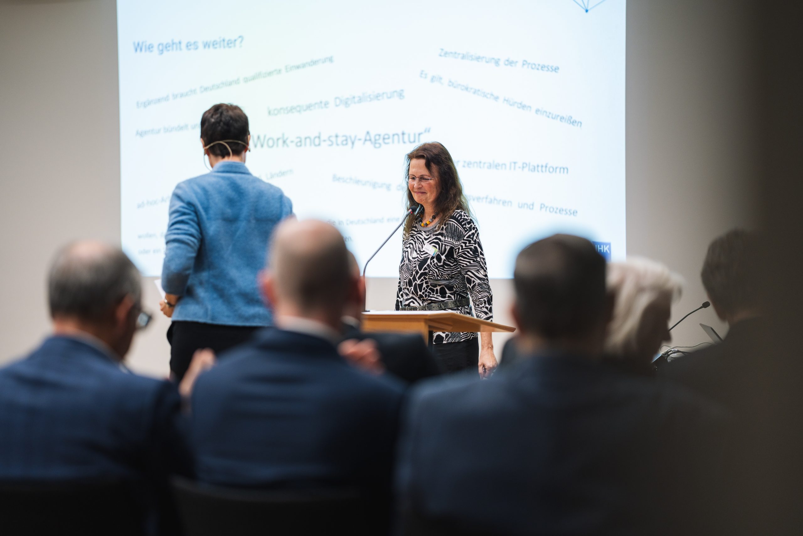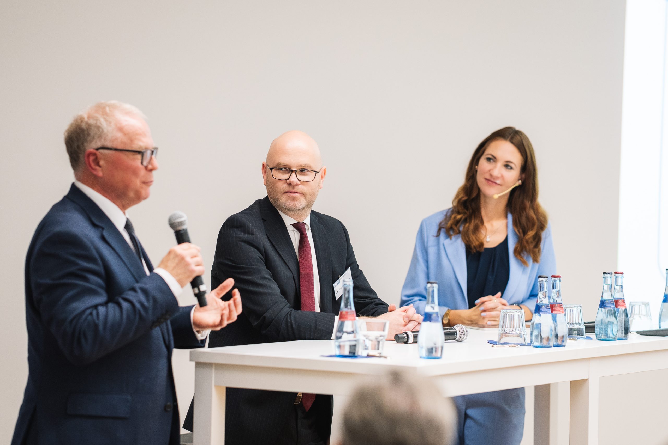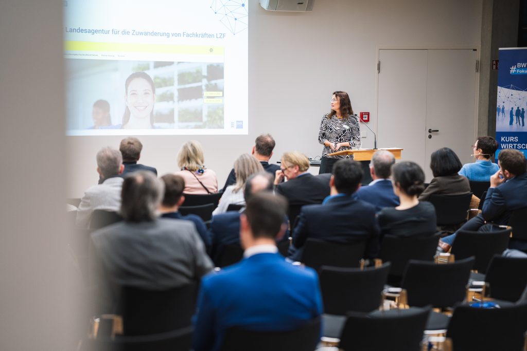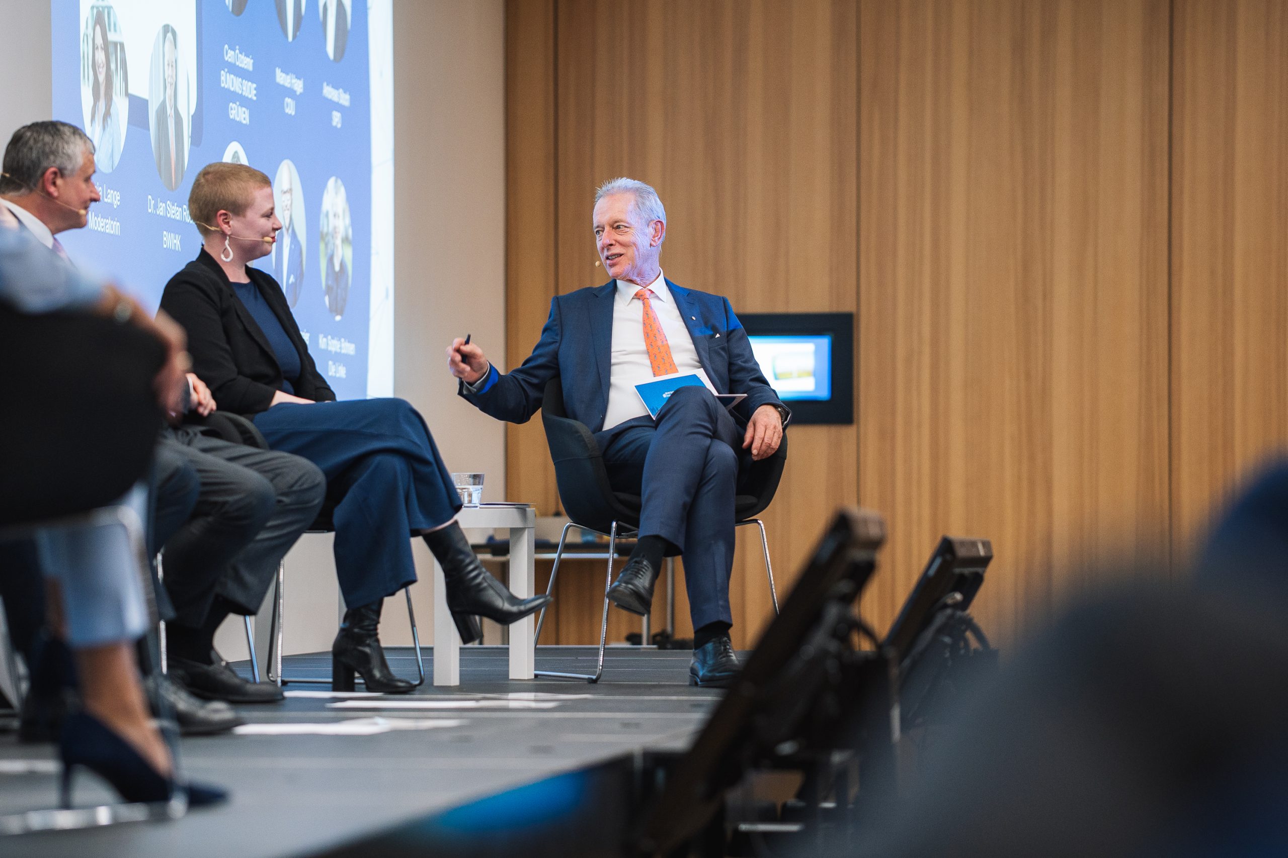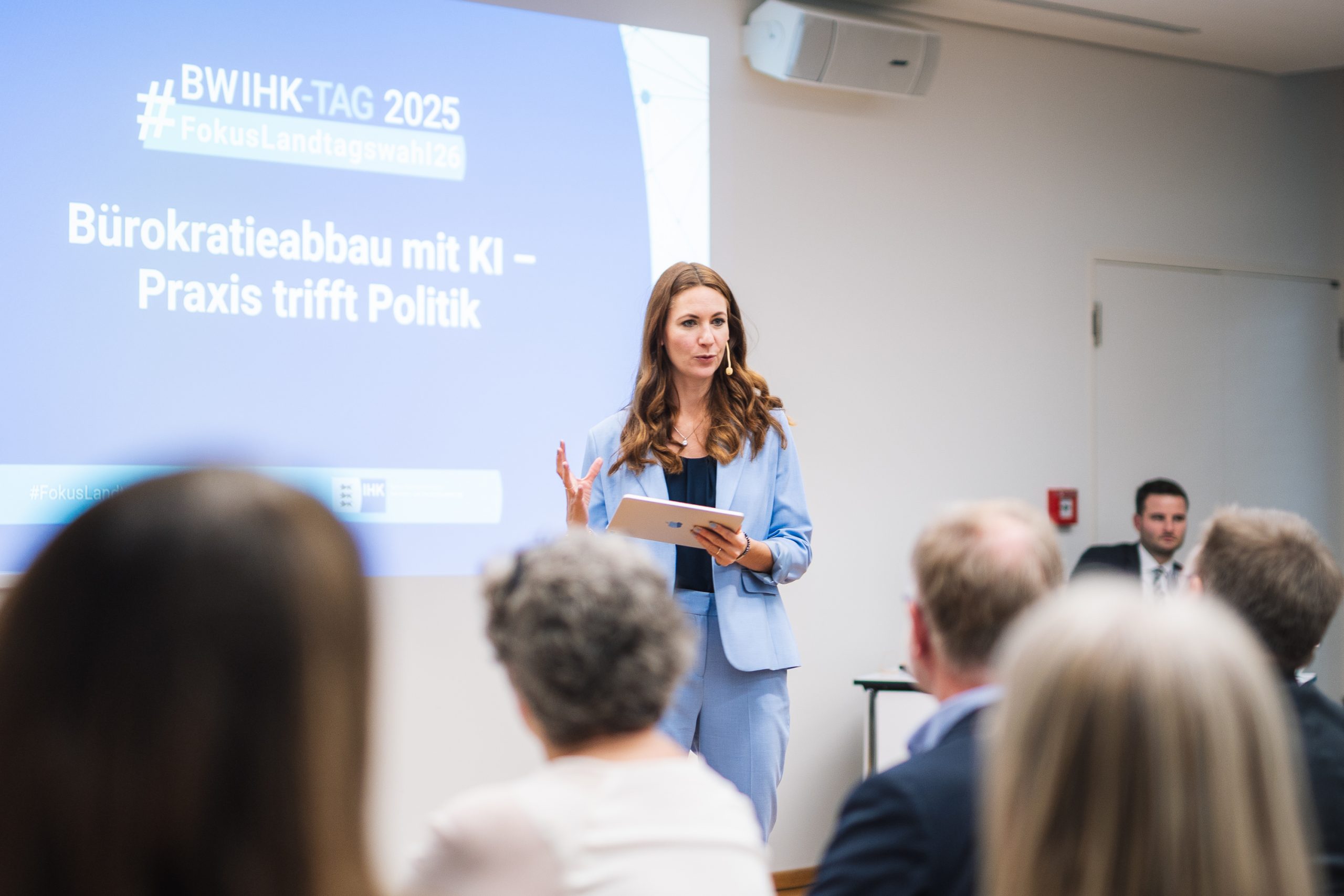 den wirtschaftspolitischen Fragestellungen und Erwartungen der Südwestwirtschaft in den Themenfeldern Bürokratie und Regulatorik, Energie sowie Bildung und Fachkräfte. Moderiert wurde die zweistündige Diskussion von Anja Lange und BWIHK-Präsident Dr. Roell.
