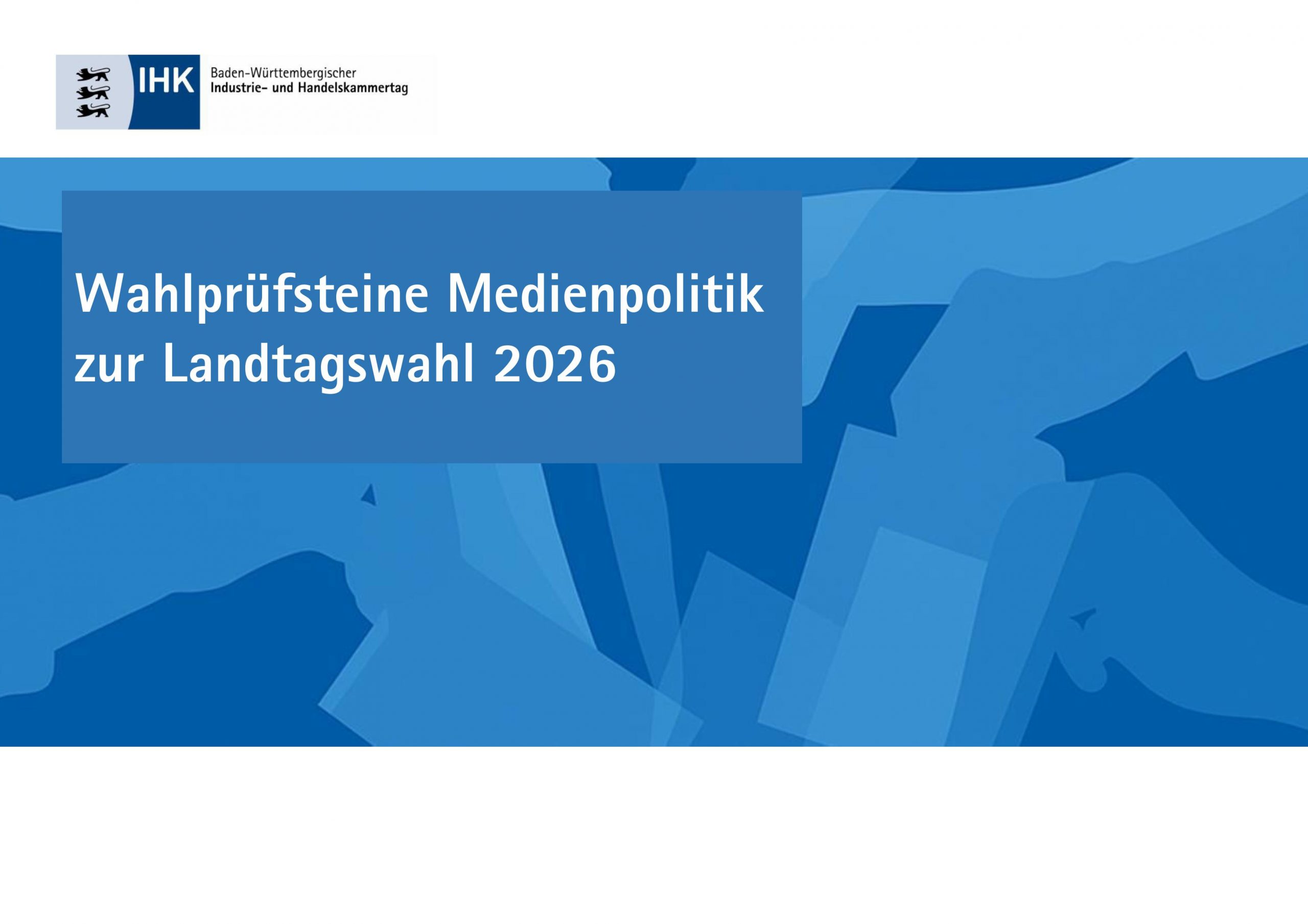 Die Wirtschaft in Baden-Württemberg ist vielfältig, innovativ und leistungsstark. Damit diese Stärken auch in Zukunft zum Tragen kommen, braucht es verlässliche Rahmenbedingungen. Als Dachorganisation der zwölf Industrie- und Handelskammern bündeln wir unsere Expertise in 22 Facharbeitskreisen: Dort entwickeln unsere IHK-Expertinnen und -Experten gemeinsame Standpunkte und erarbeiten Lösungen für zentrale wirtschaftspolitische Fragen. An dieser Stelle veröffentlichen wir unsere landesweiten Positionierungen.